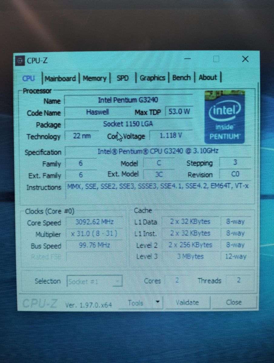 - ПроцессорIntel Pentium G3240